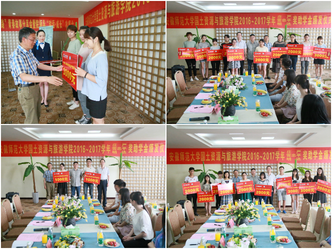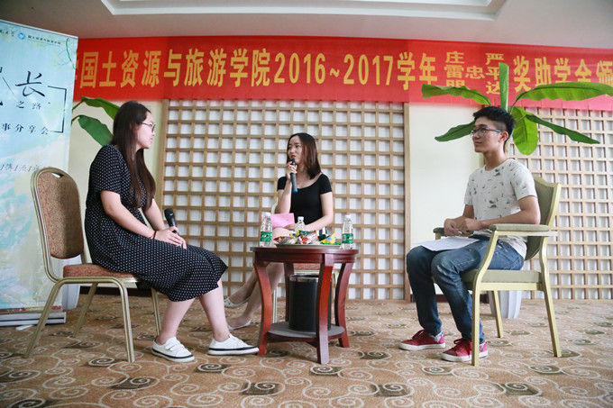 本网讯(国旅学院 梁宜人 徐永妍)6月1日下午,国土资源与旅游学院首届院领导“对话·成长”冷餐会暨第二届“我的成长之路”青春故事分享会和2016-2017学年庄严奖助学金、雷忠平奖助学金、明达奖助学金颁发仪式在国旅学院实验楼三楼饭店实训室317教室举行。国旅学院党委书记贾冠忠、院长苏勤、副书记乔静、院全体专兼职辅导员与各项奖助学金获奖受助学生参加了本次活动。活动由辅导员吴燕主持。