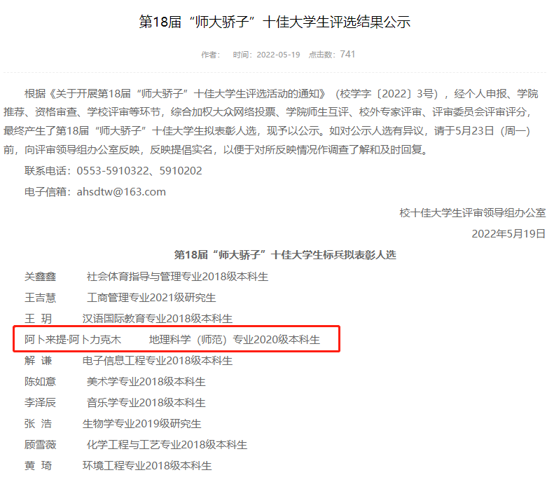退伍复学后,阿卜来提积极发挥“领航”作用,成为学校“青春导航”优秀大学生事迹宣讲员,获安徽师范大学新疆籍学生首届《三字一话》师范生基本技能比赛三等奖、安徽师范大学“学党史、强信念、跟党走”知识竞赛暨“讲述百年奋斗梦想”主题演讲比赛决赛最佳风采奖,并被学校推荐参评第25届“安徽青年五四奖章”。寒假期间,他在家乡开展民族政策宣讲和义务支教等活动,普及党和国家的好政策,宣传惠民好声音,被乡政府评为“社会实践先锋”和“优秀大学生”。