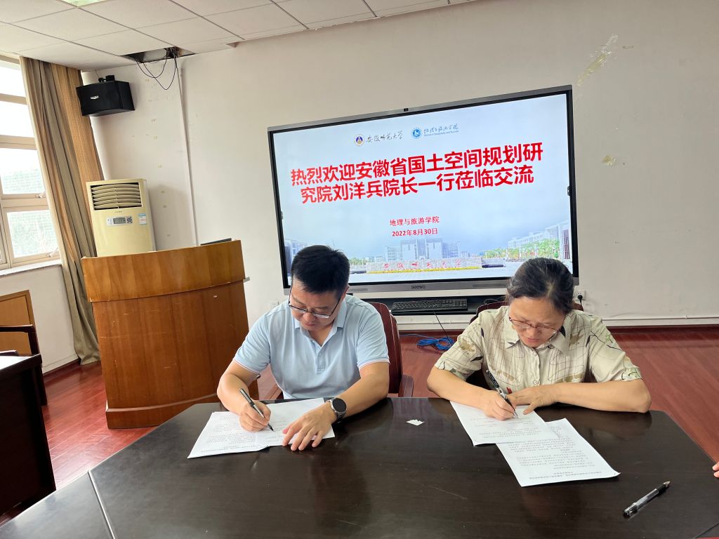 2022年8月30日下午,地旅学院与安徽省国土空间规划研究院产学研合作协议签订仪式在地旅学院三楼会议室举行。安徽省国土空间规划研究院党总支副书记、院长刘洋兵,自然资源部江淮耕地资源保护与生态修复重点实验室常务副主任、正高级工程师张红梅,总体规划部主任王栋,耕地保护部副组长刘王兵,地旅学院院长方凤满教授,程久苗教授,地理信息科学专业教师支俊俊、齐凌艳,土地资源管理专业教师罗遥等出席仪式。仪式由方凤满院长主持。